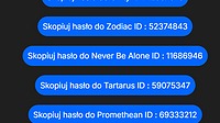 list of new maps and a small addition: maps are: Unity ID : 12057578 Zodiac ID : 52374843 Never Be Alone ID : 11686946 Tartarus ID : 59075347 Promethean ID : 69333212 Language English...